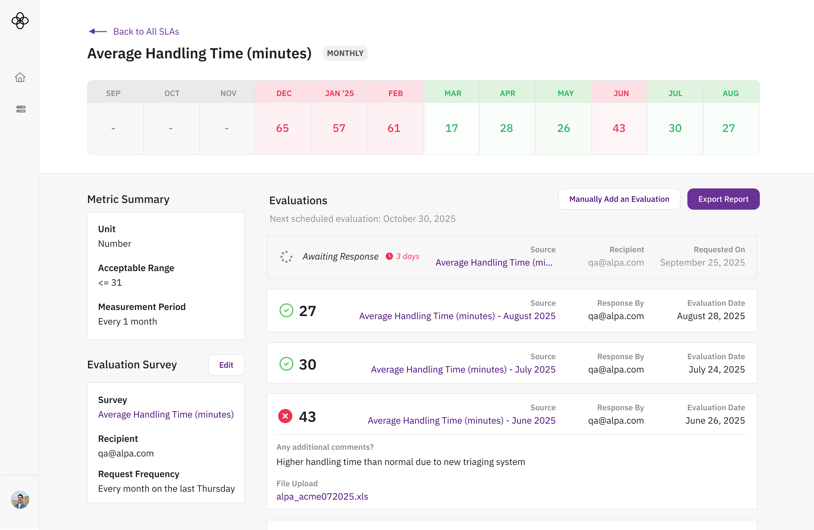 This dual-threshold approach gives you nuanced visibility into vendor performance—not just pass/fail, but how well they're truly delivering.